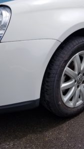 少し擦った程度なので研ぎ落してサフェーサを吹き 塗装していきます。 綺麗になおりました。 外車なので金額を心配していましたがとても喜んでいただけました。