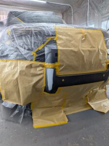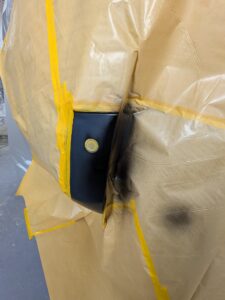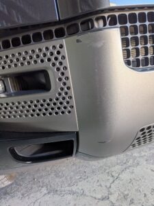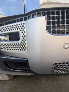フロントバンパーを当て逃げされてしまったとの事で 鈑金修理のご入庫いただきました。 今回はフロントバンパーのマッド部分とサイドの黒部分です。 マッドの部分は色データーもないので1から色を作っていきます。 黒の部分は艶ありで塗装します。 綺麗に仕上がりました。 交換よりかなりお安く修理できました。